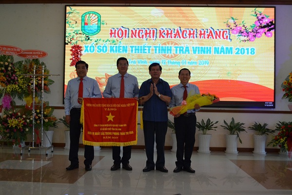 Cũng nhân dịp Hội nghị này, Công ty vinh dự đón nhận Cờ thi đua của Thủ tướng Chính phủ; Chủ tịch UBND tỉnh tặng 36 Bằng khen và Chủ tịch công ty tặng 47 Giấy khen cho Anh, chị đại lý có thành tích trong tiêu thụ vé số kiến thiết Trà Vinh năm 2018.