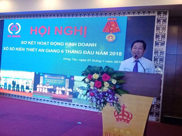 Ngày 07/07/2018 vừa qua, tại TP. Vũng Tàu, Công ty TNHH MTV Xổ số kiến thiết An Giang đã tổ chức Hội nghị sơ kết hoạt động kinh doanh xổ số kiến thiết An Giang 6 tháng đầu năm 2018, nhằm đánh giá tình hình hoạt động 6 tháng đầu năm và đề ra nhiệm vụ kinh doanh 6 tháng cuối năm 2018.