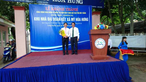 Hòa cùng không khí kỷ niệm 130 năm ngày sinh Chủ tịch Tôn Đức Thắng (20/8/1888 - 20/8/2018), sáng ngày 10/8/2018, UBND xã Mỹ Hòa Hưng, TP. Long Xuyên, tỉnh An Giang đã tổ chức bàn giao 23 căn nhà đại đoàn kết được xây dựng liên kế cho người nghèo xã Mỹ Hòa Hưng, do Công ty TNHH MTV Xổ số Kiến thiết An Giang tài trợ.