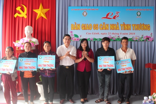 Ngày 21/8/2018, Công ty TNHH MTV Xổ số kiến thiết Bến Tre đã phối hợp với Công ty TNHH MTV Xổ số kiến thiết Đồng Tháp cùng chính quyền địa phương tổ chức lễ bàn giao 10 căn nhà tình tình thương cho các hộ nghèo trên địa bàn hai huyện Cao Lãnh và Lấp Vò, tỉnh Đồng Tháp.