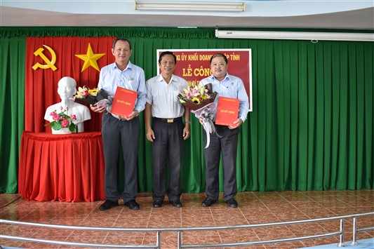 Phát biểu tại buổi Lễ, đồng chí Phan Hữu Phước - Phó Bí thư Thường trực Đảng ủy Khối gửi lời chúc mừng và mong muốn trên cương vị mới đồng chí Lưu Hoàng Tân và đồng chí Ngô Thanh Trí sẽ xây dựng tập thể đoàn kết, trách nhiệm, phấn đấu hoàn thành đạt và vượt chỉ tiêu đề ra; cũng như xây dựng đội ngũ cán bộ liêm khiết, quan tâm tạo nguồn kế thừa; chú trọng thực hành tiết kiệm, phòng chống tham nhũng, lãng phí; xây dựng tổ chức Đảng trong sạch, vững mạnh.