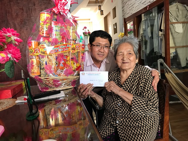 Ông Võ Trung Dũng – Phó Giám đốc Công ty, đại diện Đoàn tặng quà cho Mẹ VNAH Phạm Thị Nở (tại phường Mỹ Phước, TP. Long Xuyên)
