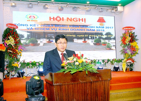 Mở đầu hội nghị Tổng kết năm 2017 định hướng kinh doanh năm 2018ông Võ Trung Dũng thay mặt BGĐ Công ty báo cáo kết quả hoạt động kinh doanh năm 2017 và nhiệm vụ kinh doanh năm 2018. Sau đó là phần xướng danh khen thưởng đại lý được chủ tịch UBND tỉnh tặng bằng khenđã có thành tích đóng góp cho việc phát triển doanh thu tiêu thụ vé số An Giang và khen thưởng cho các tập thể và cá nhân Công ty đã đạt thành tích xuất sắc trong năm 2017.