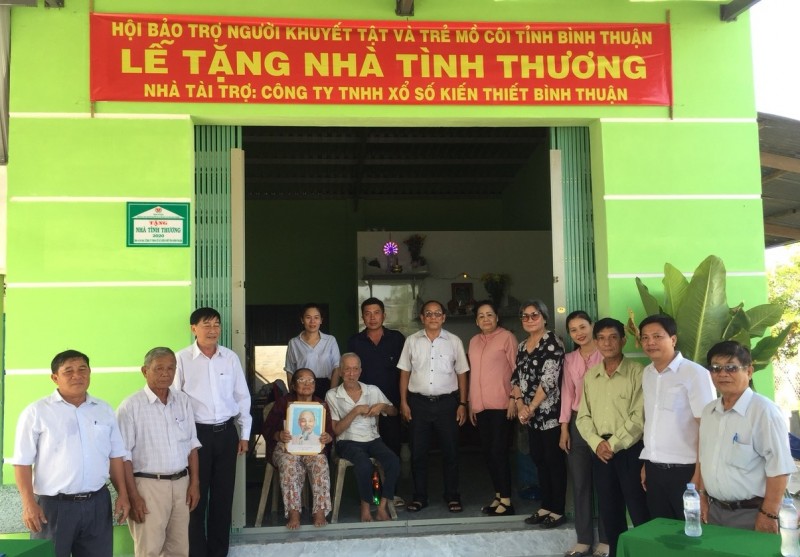 Công ty TNHH Xổ số kiến thiết Bình Thuận phối hợp Hội bảo trợ người khuyết tật và trẻ mồ côi tỉnh đã trao 3 căn nhà tình thương cho người khuyết tật. 3 hộ được trao nhà lần này gồm: bà Đặng Thị Xuân Hương (thôn Láng Gòn, xã Tân Xuân, huyện Hàm Tân), bà Nguyễn Thị Thu Hoài ( thôn Hồng Chính, xã Hoà Thắng, huyện Bắc Bình) và ông Vương Sanh ( thôn Lâm Lộc, xã Hoà Minh, huyện Tuy Phong).