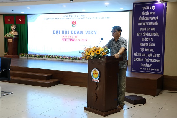 Đ/c Nguyễn Việt Trường An - Bí Thư ĐoànCông ty Đầu tư Tài chính nhà nước TP. Hồ Chí Minhphát biểu ý kiến chỉ đạo Đại hội.