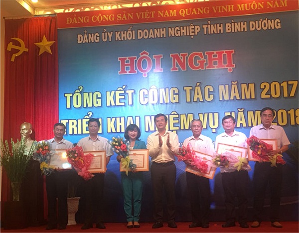 Ngày 23/01, tại Hội nghị lần thứ mười hai của Ban chấp hành Đảng bộ khối Doanh nghiệp tỉnh Bình Dương, Đảng bộ Công ty TNHH MTV Xổ số kiến thiết Bình Dương đã vinh dự được tặng Giấy khen Đảng bộ đạt tiêu chuẩn “Trong sạch vững mạnh tiêu biểu” năm 2017 và Giấy khen về thành tích xuất sắc trong việc thực hiện Kế hoạch số 06-KH/ĐUK ngày 12/4/2016 của Đảng ủy khối về mô hình “Vì người lao động” năm 2017.