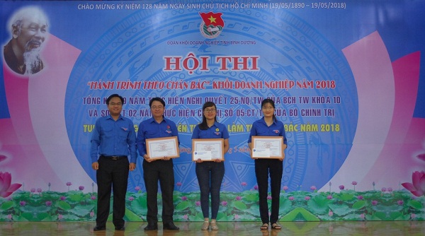 Cũng tại Hội thi, Đoàn khối Doanh nghiệp trao giải cuộc thi “Tìm hiểu Nghị quyết Đại hội Đoàn toàn quốc lần thứ XI và Nghị quyết Đại hội Đoàn tỉnh Bình Dương lần thứ X, nhiệm kỳ 2017-2022” cho 7 đoàn viên của các cơ sở đoàn. Đoàn viên Nguyễn Thị Thanh Trúc thuộc Đoàn cơ sở Công ty Xổ số kiến thiết Bình Dương đã xuất sắc đạt giải nhất. Đồng thời Đoàn khối đãtuyên dương 23 đoàn viên đạt danh hiệu “Thanh niên tiên tiến làm theo lời Bác”, trong đó có đoàn viên Hà Hải Nam thuộc đoàn cơ sở Công ty Xổ số kiến thiết Bình Dương.