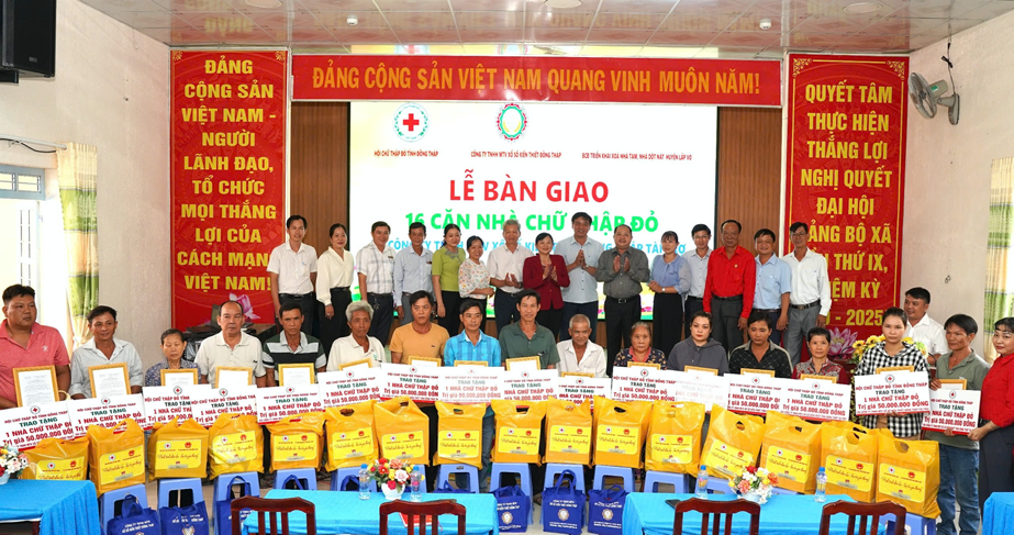 Mới đây, Hội Chữ thập đỏ tỉnh Đồng Tháp phối hợp với Công ty TNHH MTV Xổ số kiến thiết tỉnh Đồng Tháp đã bàn giao 16 căn nhà cho hộ nghèo, cận nghèo, có hoàn cảnh khó khăn trên địa bàn các huyện Lấp Vò, Hồng Ngự, Tam Nông tỉnh Đồng Tháp.