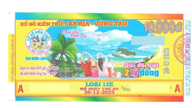Giải đặc biệt xổ số Vũng Tàu Kỳ vé 12E mở thưởng ngày 30/12/2025
