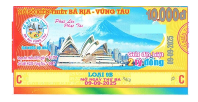 Giải đặc biệt xổ số Vũng Tàu Kỳ vé 9B mở thưởng ngày 09/09/2025