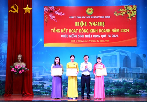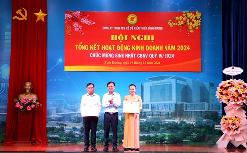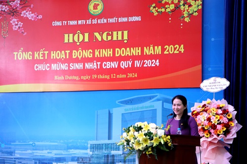 Sáng ngày 19/12/2024, Công ty TNHH MTV Xổ số kiến thiết Bình Dương đã tổ chức Hội nghị tổng kết hoạt động kinh doanh năm 2024 và kết hợp tổ chức sinh nhật quý IV cho cán bộ, nhân viên. Hội nghị có sự tham dự của Bà Nguyễn Thị Kim Mai – Chủ tịch Công ty, Ông Mai Thanh Bình – Giám đốc Công ty cùng các Ông, Bà là thành viên trong Ban Giám đốc, Trưởng Ban kiểm soát cùng toàn thể cán bộ, nhân viên Công ty.