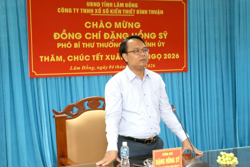 Chiều 4/2, Đoàn công tác của tỉnh Lâm Đồng do đồng chí Đặng Hồng Sỹ, Phó Bí thư Thường trực Tỉnh ủy Lâm Đồng làm Trưởng đoàn đã đến thăm, chúc Tết Nguyên đán Bính Ngọ 2026 Công ty TNHH Xổ số kiến thiết Bình Thuận (XSKT Bình Thuận).