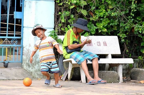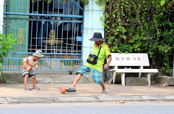 Tại một con hẻm nhỏ 2 cha con bán vé dạo sau giờ "kiếm cơm" họ lại dành cho nhau thời gian để chơi đá bóng làm ai nhìn cũng phải "ganh tỵ".