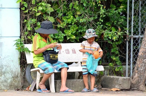 Tại một nơi khác thì có hai cho con bán vé số, vui vẽ thư giản bên trái bóng
