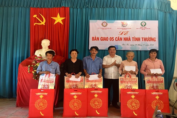 Ông Nguyễn Khắc Vũ - Chủ tịch kiêm Giám đốc Công ty trao tặng 05 căn nhà tình thương.