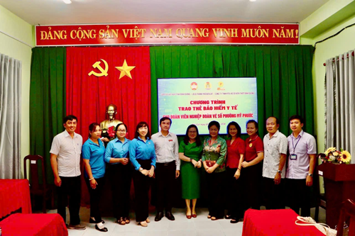 Trao tặng thẻ BHYT cho đoàn viên nghiệp đoàn vé số phường Mỹ Phước,thành phố Bến Cát, tỉnh Bình Dương
