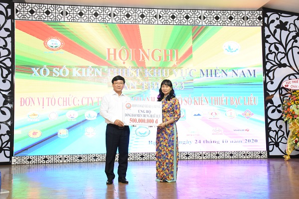 Cũng trong khuôn khổ hội nghị, ông Đỗ Quang Vinh, Chủ tịch Hội đồng Xổ số kiến thiết khu vực miền Nam đã thay mặt ngành Xổ số khu vực miền Nam đã trao số tiền 500 triệu đồng cho Ủy ban MTTQ Việt Nam tỉnh Bạc Liêu để giúp đỡ đồng bào miền Trung.