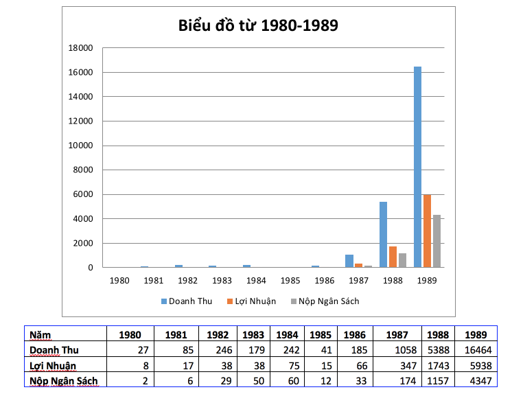 Biểu đồ kết quả kinh doanh từ năm 1980 đến năm 1989