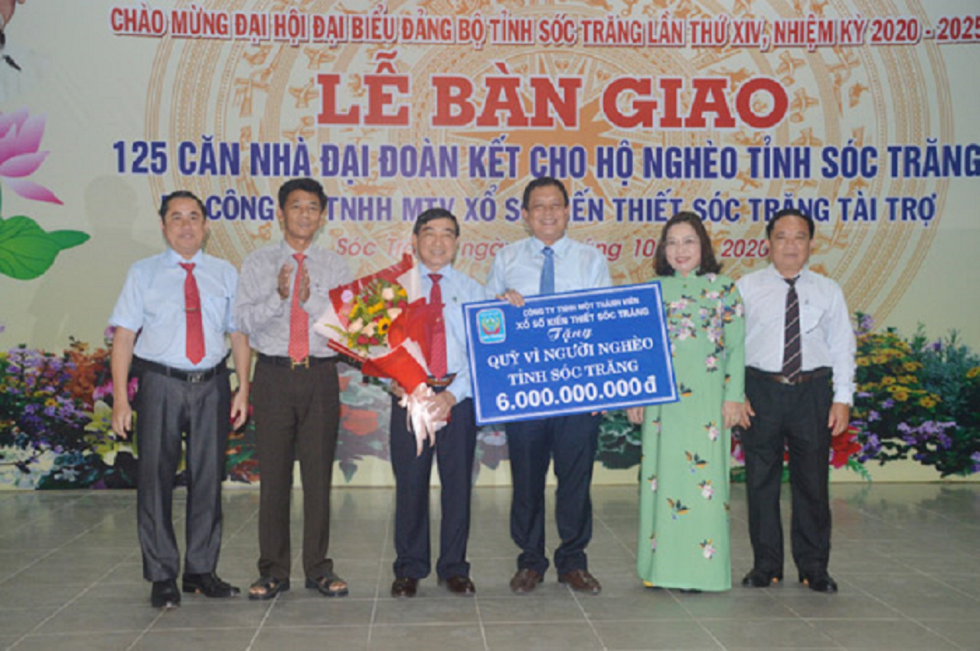 Chiều ngày 12/10 vừa qua, Ủy ban Mặt trận Tổ quốc Việt Nam tỉnh phối hợp với Công ty TNHH MTV Xổ số kiến thiết Sóc Trăng tổ chức lễ bàn giao 125 căn nhà đại đoàn kết (trị giá 5 tỉ đồng) do Công ty TNHH MTV Xổ số kiến thiếtSóc Trăng tài trợ cho hộ nghèo trên địa bàn tỉnh. Đến dự có các đồng chí: Lâm Văn Mẫn - Ủy viên dự khuyết Trung ương Đảng, Phó Bí thư Thường trực Tỉnh ủy, Chủ tịch HĐND tỉnh; Dương Sà Kha - Chủ tịch Ủy ban MTTQ Việt Nam tỉnh; Phan Thanh Mừng - Phó Chủ tịch Thường trực HĐND tỉnh; Hồ Thị Cẩm Đào - Trưởng Ban Dân vận Tỉnh ủy; Ngô Hùng - Phó Chủ tịch UBND tỉnh, cùng đại diện lãnh đạo các sở, ban ngành tỉnh.