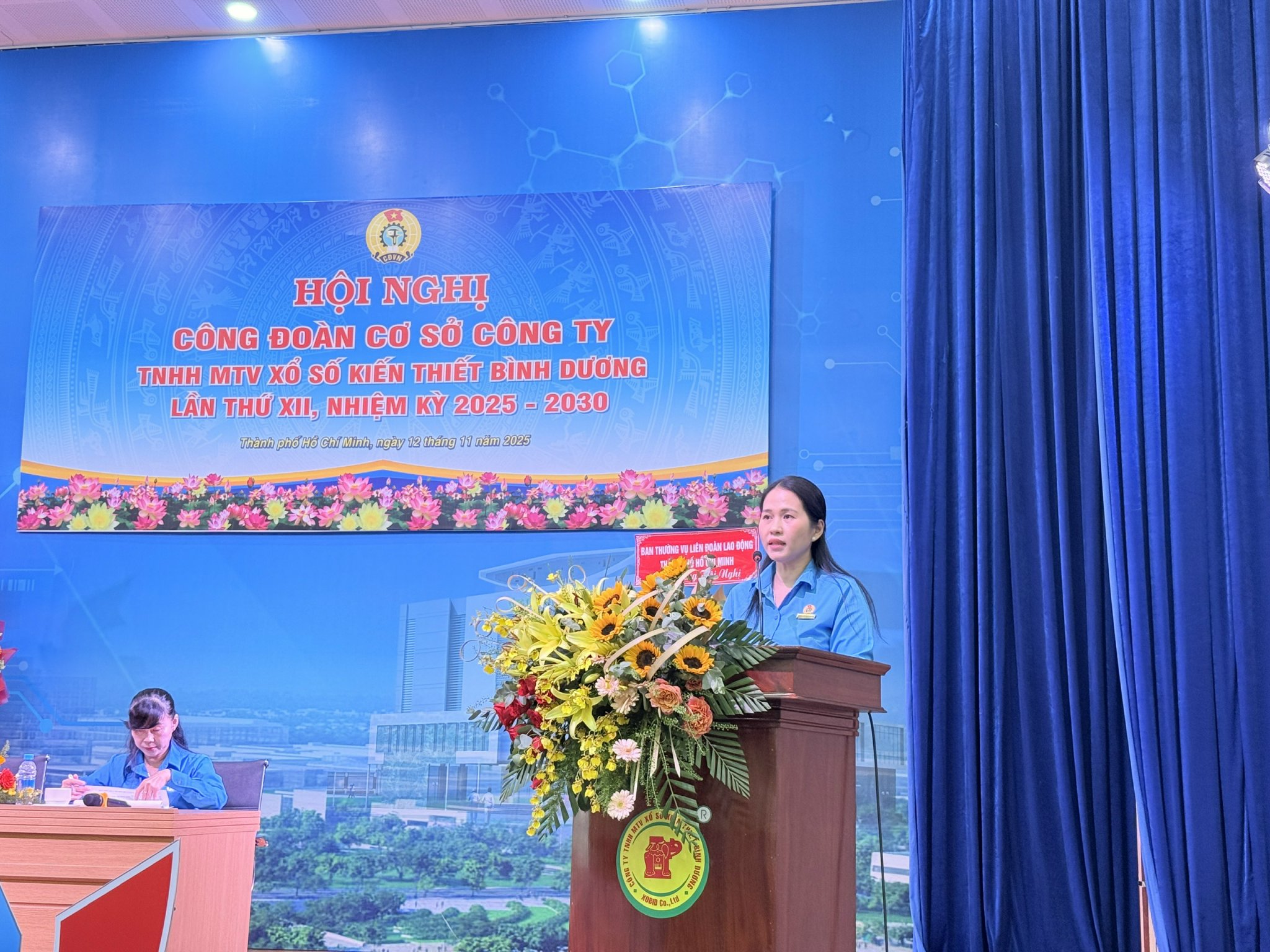 Chiều 12/11/2025, Công đoàn cơ sở Công ty TNHH MTV Xổ số kiến thiết Bình Dương (XSKT Bình Dương) tổ chức thành công Hội nghị lần thứ XII, nhiệm kỳ 2025 – 2030. Hội nghị nhằm đánh giá kết quả hoạt động công đoàn nhiệm kỳ 2023 – 2025, đồng thời đề ra phương hướng, mục tiêu và nhiệm vụ trọng tâm cho nhiệm kỳ mới.