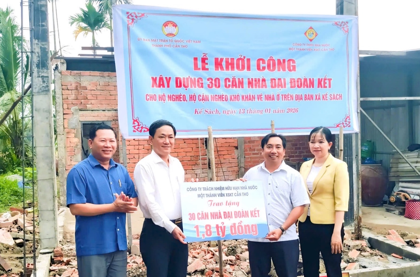 Ngày 13/01, Công ty TNHH NN Xổ số kiến thiết Cần Thơ tổ chức Lễ khởi công xây dựng trao tặng 30 căn nhà Đại đoàn kết cho Ủy ban Mặt trận tổ quốc Việt Nam thành phố Cần Thơ.