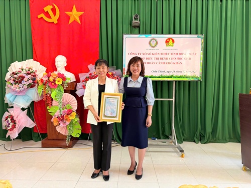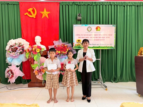 Với tinh thần “Tương thân, tương ái”, “Lá lành đùm lá rách” và mong muốn chia sẻ, động viên với hoàn cảnh gia đình các em học sinh mắc bệnh hiểm nghèo, Công ty TNHH MTV Xổ số kiến thiết Đồng Tháp đã trao tặng03 phần quà, mỗi phần trị giá05 triệu đồng từ quỹ Quỹ hỗ trợ bệnh nhân nghèo được trích từ Chương trình đi bộ đồng hành Xuân Ất Tỵ năm 2025với thông điệp“Xổ số Đồng Tháp – Lan tỏa yêu thương”nhằm hỗ trợ gia đình các em có thêm kinh phí để điều trị bệnh.